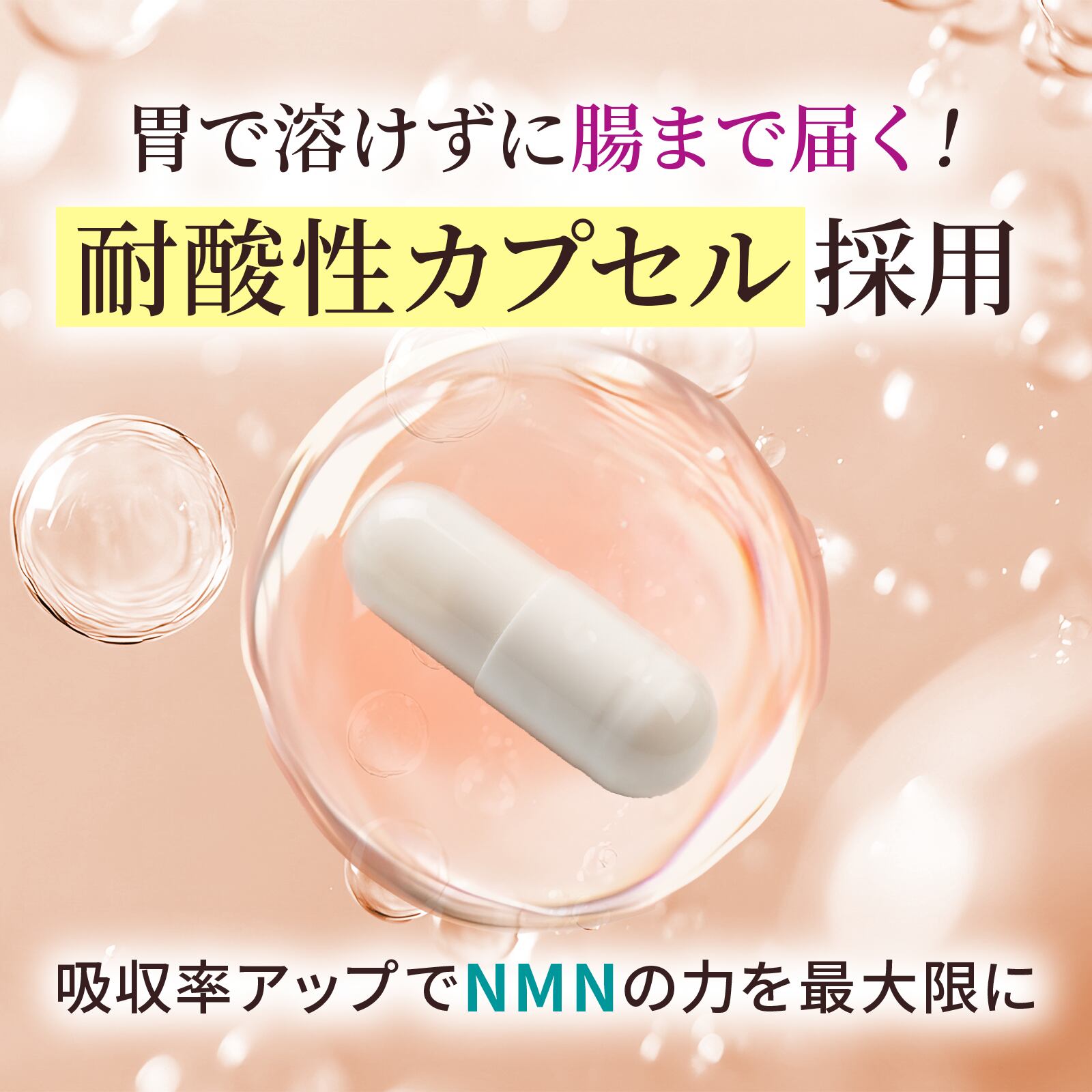 1粒に300mgのNMNを配合し、30日間で合計9000mgをしっかり補給。科学的に効果が証明されたNMN(β-ニコチンアミドモノヌクレオチド)の力を最大限に引き出し、日本製だからこそ、安心・安全な毎日のエイジングケアをお届けします。
